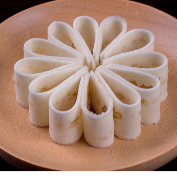 4.合桃片:是一种传统的中式点心。主要原料通常包括核桃、糖等。其主要特点是口感酥脆,有浓郁的核桃香味。合桃片常作为零食或茶点食用。