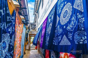 8.白族扎染是云南白族地区的传统民间工艺,以手工将白布扎结后浸染,通过拆线形成蓝白相间、自然晕染且独具民族特色的精美图案,承载着白族的文化与审美,被列入国家级非物质文化遗产名录。