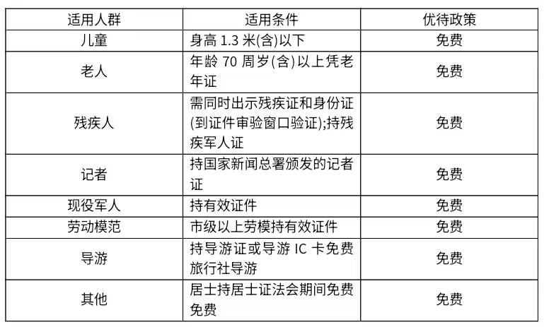 | 儿童/学生票 | 儿童/学生票 | 提前1天16:00前 |