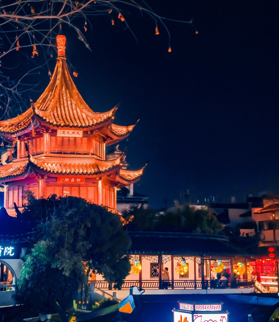 南京夫子庙全名为“大成至圣先师文宣王庙”,是中国四大文庙之一,历史沿革:夫子庙始建于东晋成帝咸康三年(337年),为东晋学宫,北宋景祐元年(1034年)扩建为孔庙,南宋建炎时期受战火摧毁,绍兴年间修复并新建贡院,形成孔庙、学宫和贡院组成的古建筑群。明清时期因乡试和会试举办而繁荣,后历经四毁五建,1984年开始重建,1990年修复工程竣工。 建筑布局:夫子庙占地面积26300平方米,由孔庙、学宫和贡院三大建筑群组成,左右对称分布。从南向北依次矗立着大照壁、泮池、棂星门、大成门、大成殿、明德堂、敬一亭、聚星亭、魁星阁、尊经阁等建筑,呈现出庙、市、街、景合一的建筑景观。 主要景点:大照壁位于秦淮河南岸,长约110米,高约10米,是中国照壁之最;泮池是以天然活水秦淮河为源的半圆形水池,是世界孔庙中唯一一座以天然活水为池之地;大成殿是夫子庙的主体建筑,为重檐歇山顶,殿中央陈列有国内最大的巨幅孔子画像,四周墙壁镶嵌的彩石壁画《孔子圣迹图》是夫子庙镇庙之宝。文化特色:夫子庙是南京历史文化的重要象征,也是中国儒家文化的代表性建筑之一。这里曾是中国第一所国家最高学府,也是明清时期东南各省文教建筑群之冠,见证了古代教育制度的兴衰变迁。此外,夫子庙一带还是南京著名的商业中心,沿街遍布酒肆、茶馆、小吃等,同时每年春节至元宵节期间还会举行秦淮灯会,热闹非凡。