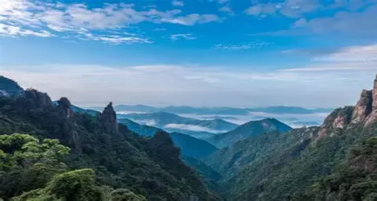 位于上饶市东北部,有“小黄山”之称,因三清山-玉京峰、玉虚、玉华峰三座山峰挺拔屹立,神似道教玉清、上清、太清三位尊神列坐在山巅之上而得名。这里是道教名山,景色也有几分仙气,能看漂亮的云海日出,欣赏山间惟妙惟肖的奇石,还能走上高空栈道赏景。