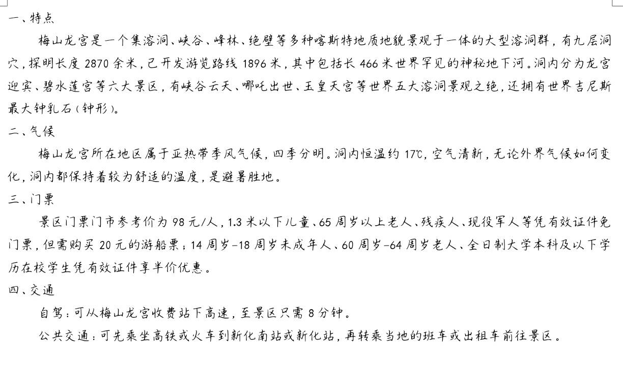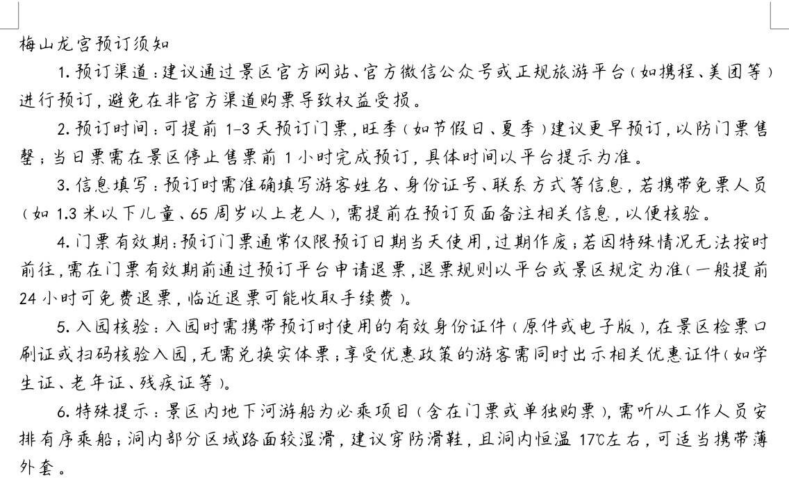 | 景区 | 梅山龙宫优惠票 | 提前1天12:00前 |