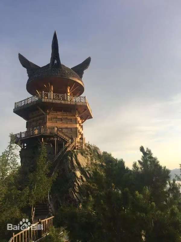 观鱼台台高19米,总重量777吨,与湖面的垂直落差达660多米,因处于观察“湖怪”的最佳位置,故原名观鱼亭,始建于1987年,2009年后改建后更名为观鱼台。观鱼台结构为两台一亭,可容纳百余人同时观景,顶部为半圆球状,有四个对称的类似于翅膀的奇异造型,是湖怪尾巴和雄鹰翅膀的寓意。