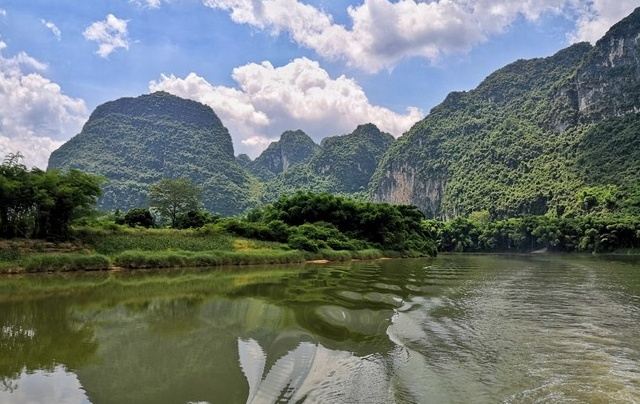 景区的核心体验依托左江的蜿蜒河道展开,乘船溯江而上,喀斯特峰林如青螺般散落在碧波两岸,翠竹依依的江岸与云雾缭绕的山峦构成天然画框,乘船时 “船行碧波上,人在画中游” 的意境,为岩画观赏铺垫了灵动的自然底色。这片山水不仅是视觉背景,更是骆越先民创作岩画的天然载体 —— 临江的斧劈刀削式崖壁高达数十米,既为岩画提供了宏大的展示面,也借助江水的屏障形成了天然保护,使得千年岩画得以留存至今。