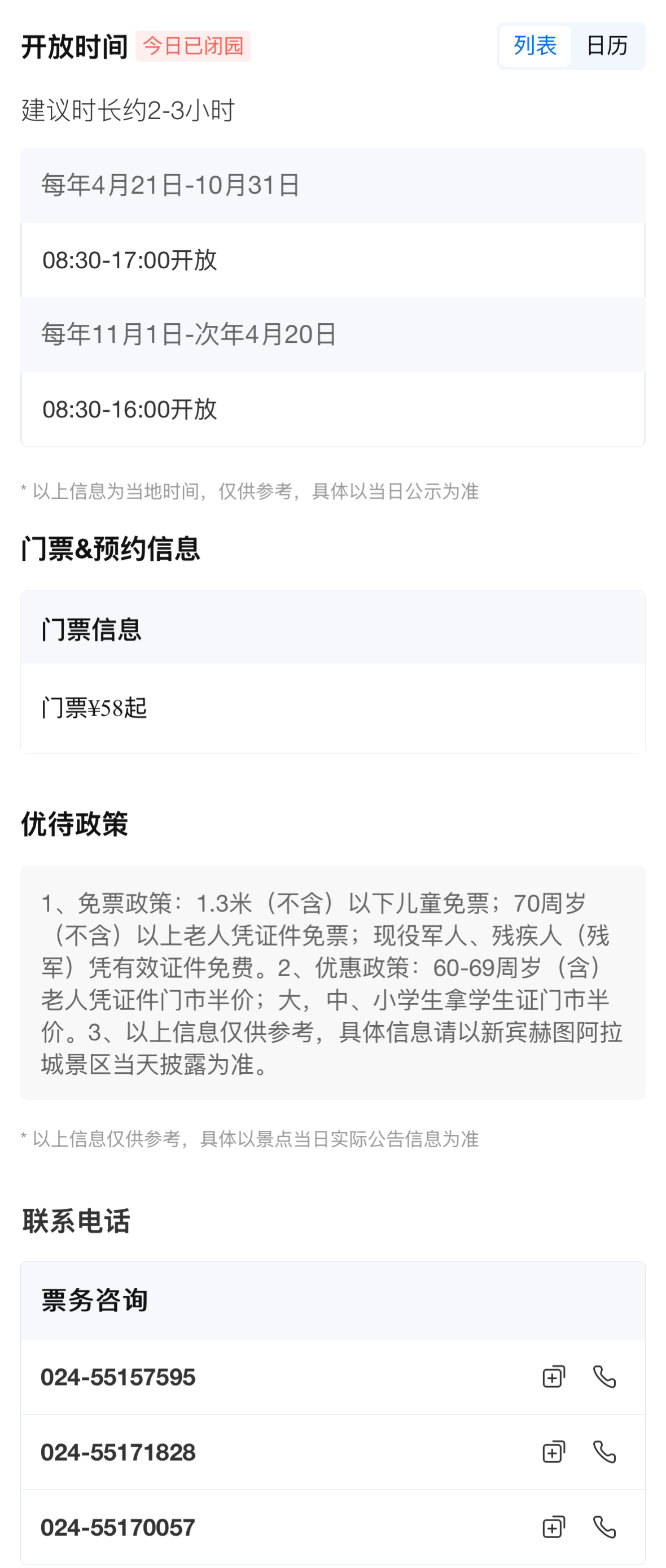 | 联票 | 家庭票2大1小 | 提前1天24:00前 |