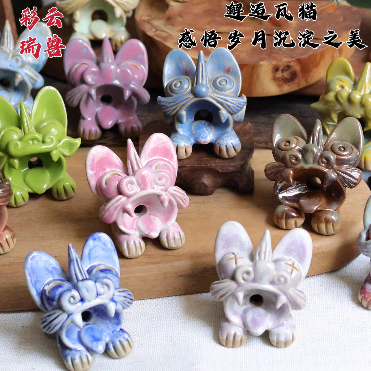 招财瓦猫非遗纯手工捏制陶瓷桌面摆件创意礼品
