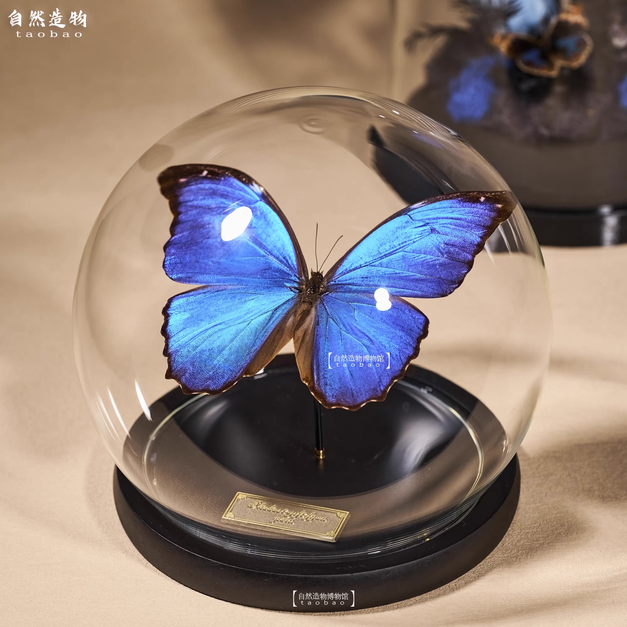 大蓝闪蝶蝴蝶标本玻璃罩创意桌面摆件家居装饰